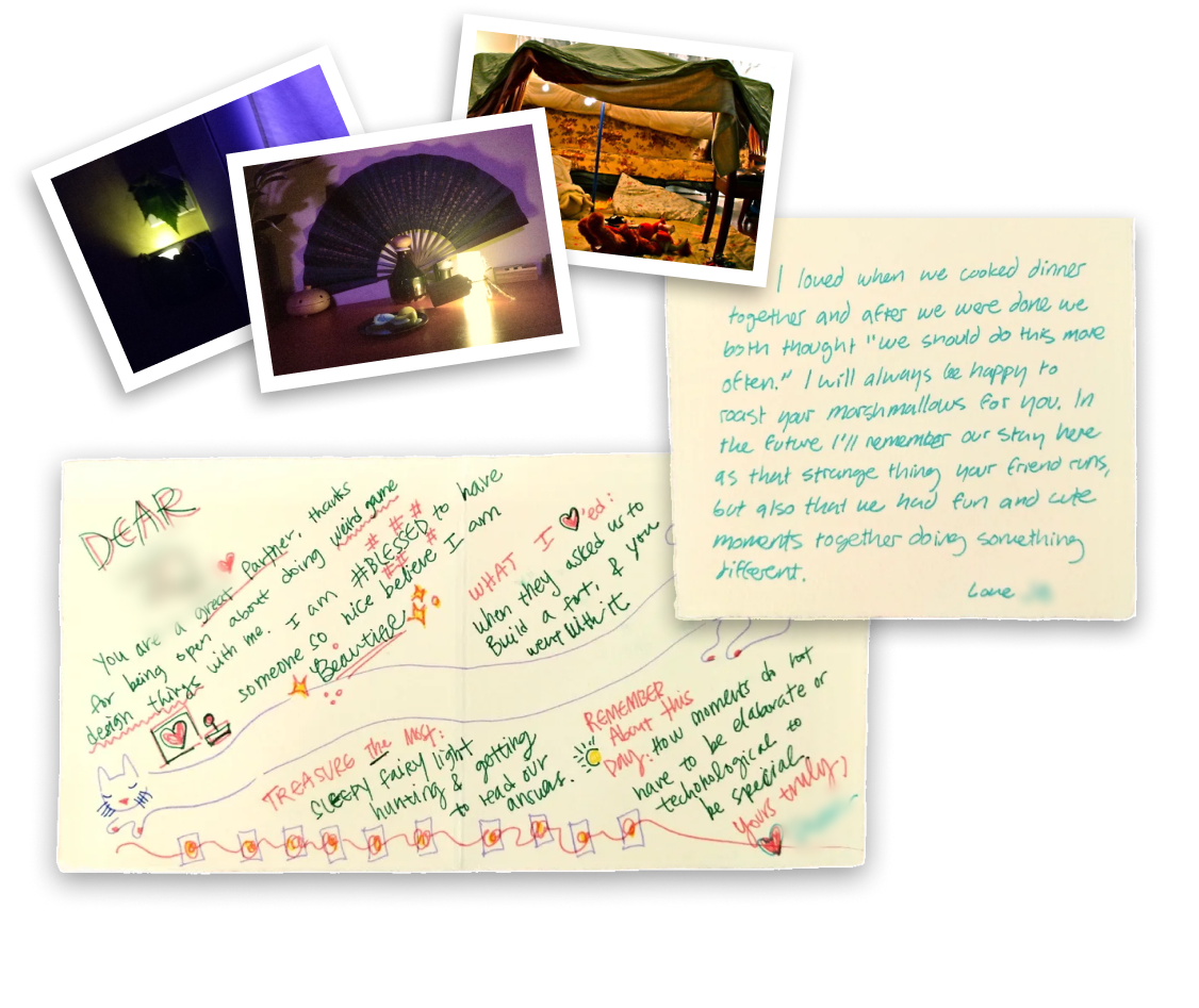 Over breakfast in the morning, the guests are given the chance to write each other a letter about their experience and return their Memory Boxes for transformation. In about a week they will receive an envelope containing their memories and the letter from their partner.