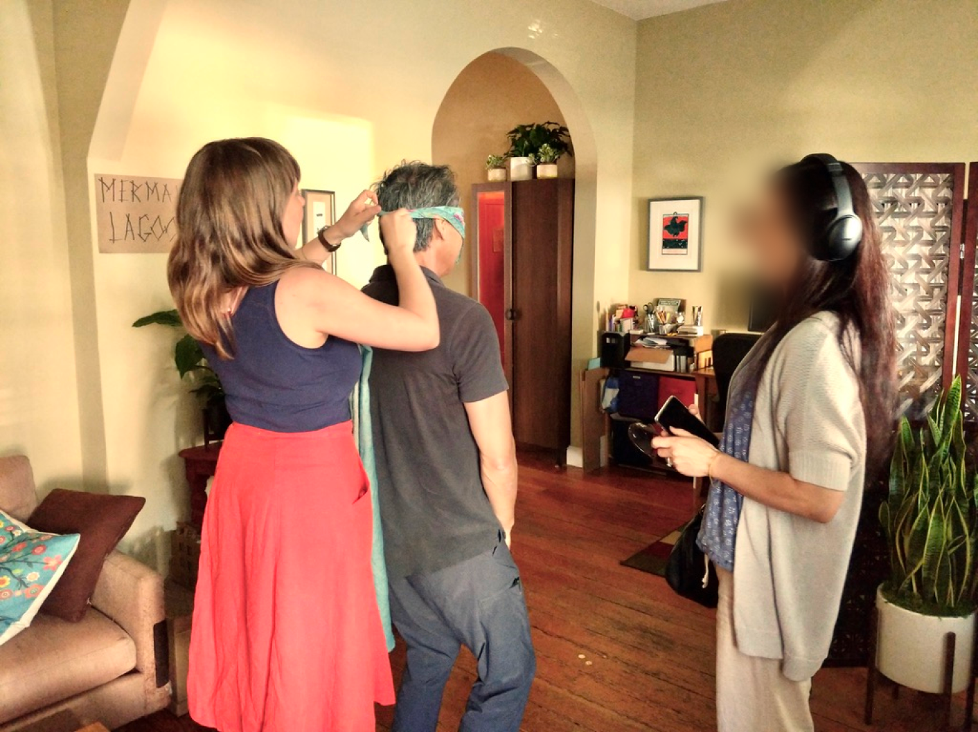 The guests are given a tour of the house and told how to navigate the rest of the experience. Afterwards, they must work together to remember and communicate to each other which parts of the tour they could each see or hear.