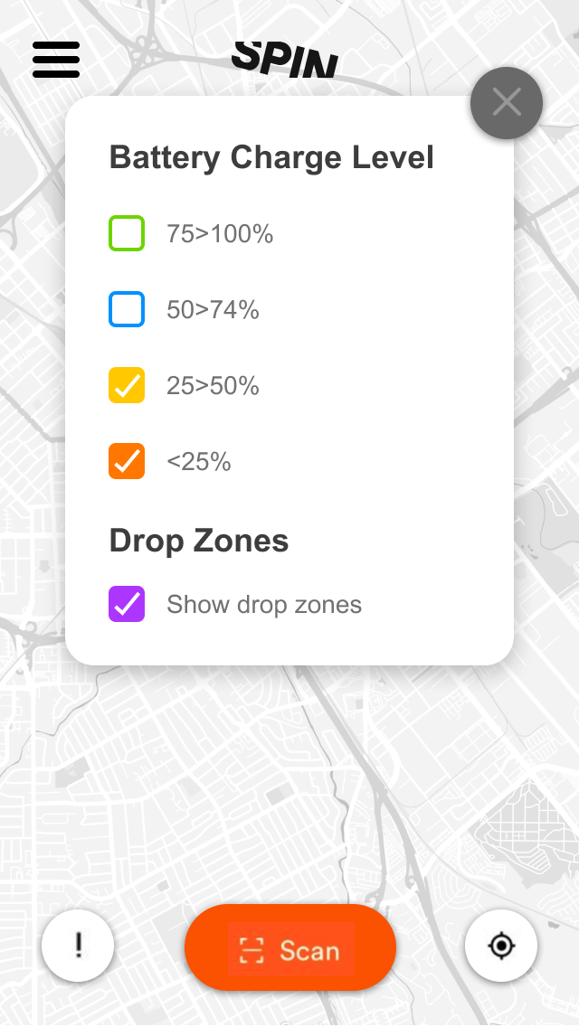 Increases rider confidence by allowing them to search for only bikes and scooters with battery levels within a certain range.